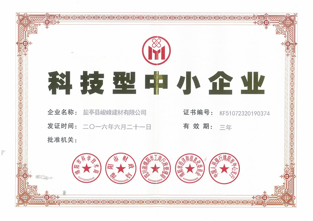 盐亭峻峰建材有限公司位于四川省盐亭工业园区占地50亩,建筑面积3000平方米,公司注册资本1000万元人工币,企业总投资